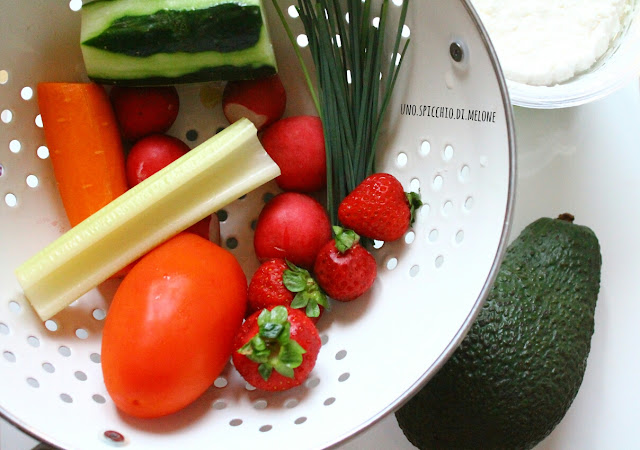 Ai ravanelli e cetrioli non ho aggiunto nessun formaggio ma una manciata di erba cipollina (ci sta molto bene) mentre le carote ed il sedano li ho accompagnati con la ricotta (perfetto connubio)!