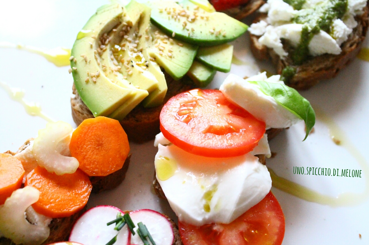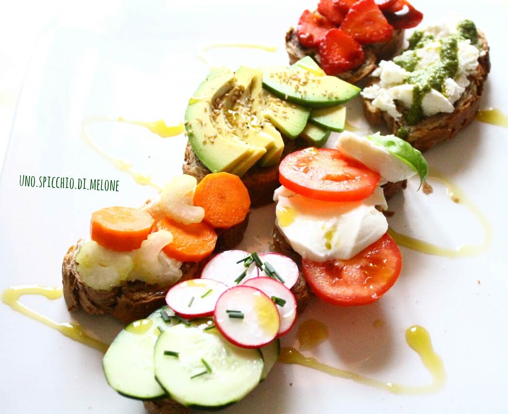 Sapete quanto amo le verdure (anche perché mi capita spesso di portare a casa innumerevoli “scarti” dalla campagna e dover trovare il modo di mangiarli tutti)…quindi, vi propongo delle bruschette un po’ VEGGIE cioè (dall’inglese) un po’ VEGETALI…però italianizzato è un po’ meno romantico, non trovate?