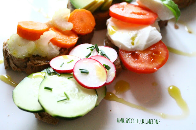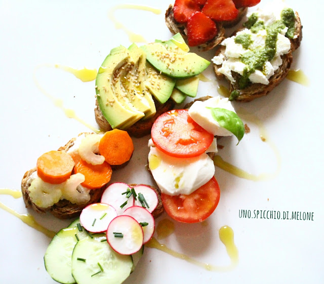 Il procedimento è facilissimo…una volta lavate e tagliate le verdure (e la frutta) potete iniziare a farcire le vostre fette di pane come più vi piace, salate e oliate!!! :-) :-)