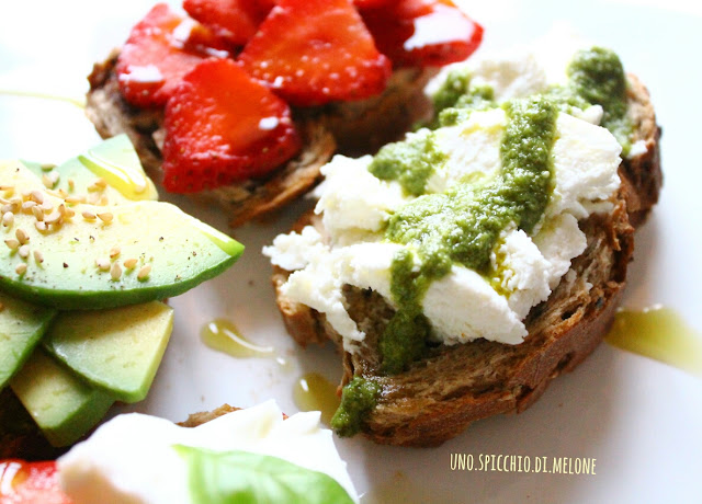 Io ho deciso di non aggiungere verdure alla bruschetta ricotta e pesto in quanto sono una COPPIA SPETTACOLARE…e va gustata così com’è nella sua purezza!