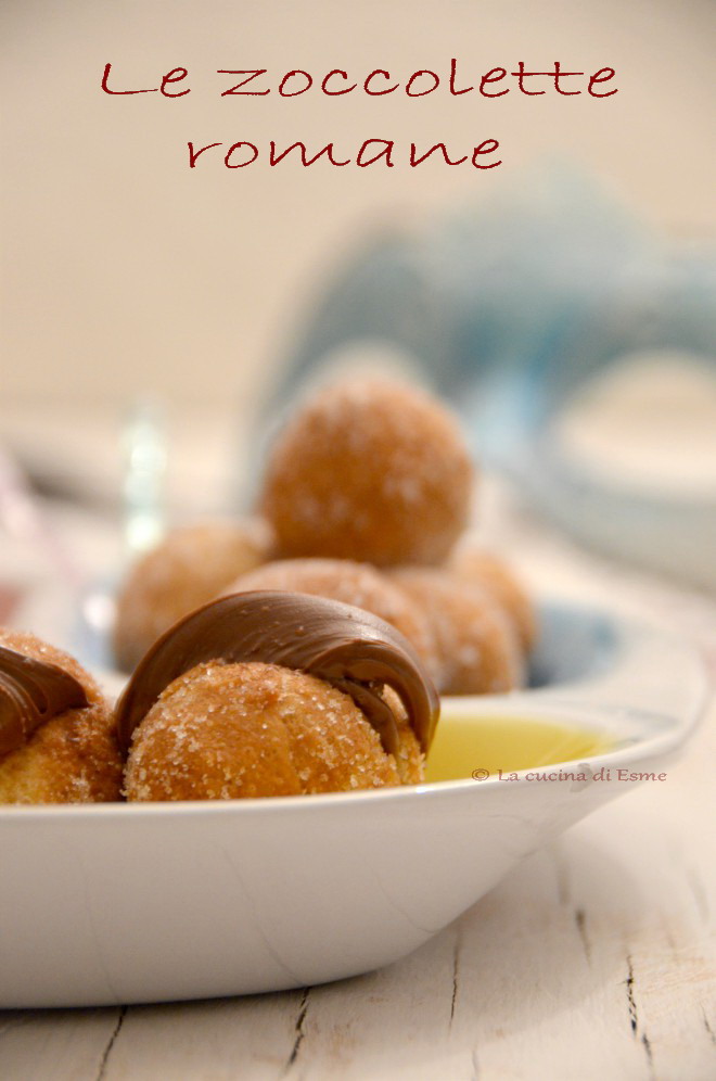 I romani sanno perfettamente di cosa parlo, ma per tutti gli altri il nome di questi golosissimi dolcetti fritti, tipici della mia città, potrebbe sembrare … un pochino strano. Non so nella vostra regione che tipo di significato abbia questo termine, ma a Roma è un appellativo volgare, dato (senza il diminutivo) ad un certo tipo di signore che svolgono un mestiere antico. Secondo l´ufficio di toponomastica comunale, sembra che il termine sia nato in una stradina del centro di Roma, via delle Zoccolette appunto, dove un tempo era ubicato l’istituto di dei Ss.Clemente e Crescentino, che ospitava delle orfanelle. Sembra infatti che molte di loro fossero orfane di padre ignoto e ricoverate nel collegio delle madri, non per necessità economica, ma perché loro, non impegnate come madri, potessero continuare a fare le prostitute, in dialetto romano «zoccole». E di qui l´attribuzione di zoccolette data alle figlie. Ora, come questo termine dopo secoli sia entrato in quasi tutti i menù di pizzerie e trattorie romane nella sezione dolci … per me rimane un mistero! Le zoccolette alla nutella non sono solo offerte nel periodo carnevalesco, in città si trovano per la nostra goduria tutto l’anno, sono semplicissime da fare, la classica ricetta non ricetta, sono piccole chicche di pasta lievitata e fritta con due leggerissime varianti, c’è chi dopo averle passate nello zucchero gli cola sopra della nutella leggermente sciolta e chi, come me, preferisce farcirle. Insomma provatele sono una vera goduria … indiscutibilmente #foodporn !