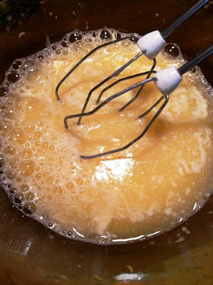 Sgusciare le uova in una ampia scodelle e unire il succo filtrato e la buccia grattugiata di un limone bio…