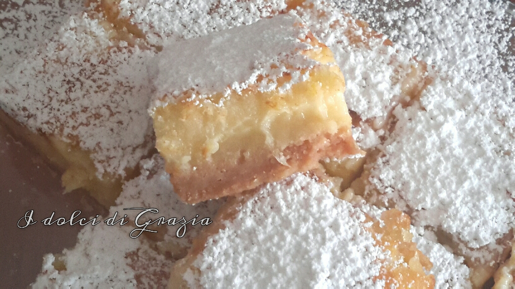 Lasciare raffreddare bene la lemon square nello stampo e poi sformare.