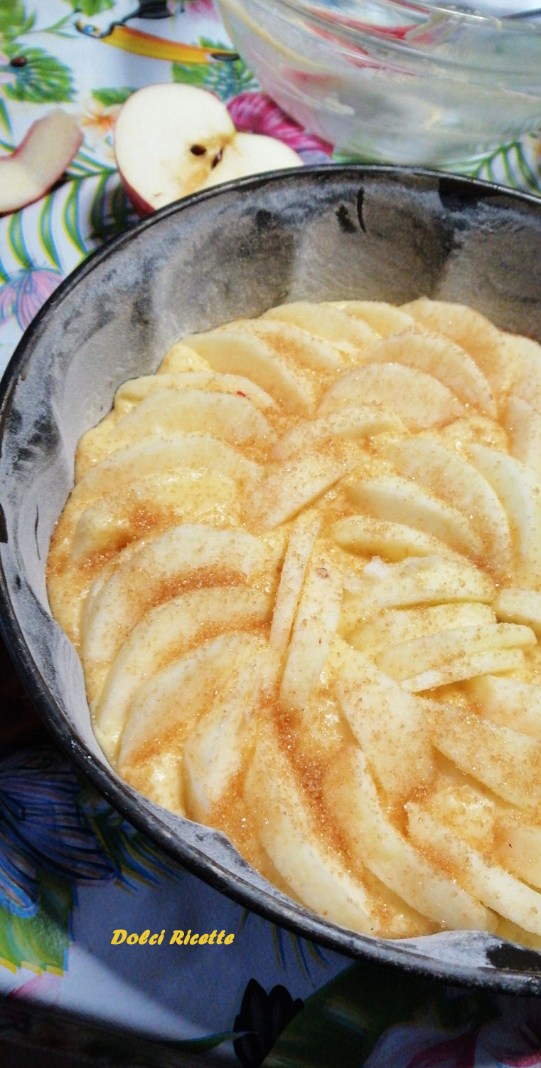 Procedimento: far sciogliere il burro in un pentolino e farlo raffreddare, nel frattempo tagliare le mele a fettine sottili e metterle da parte. In una ciotola mescolare le uova con lo zucchero, aggiungere man mano la farina setacciata dove avrete mescolato anche il lievito in polvere. Mescolare bene e aggiungere man mano anche il burro e il latte. Quando l’impasto sarà ben amalgamato versarlo nella tortiera imburrata e infarinata, e posizionare sopra le mele. Una volta sistemate tutte le mele cospargete la superficie con lo zucchero di canna e se volete anche con mezzo cucchiaino di cannella e un pizzico di chiodi di garofano mischiati allo zucchero. Cuocere in forno a 170°/180° per circa 30/35 minuti.