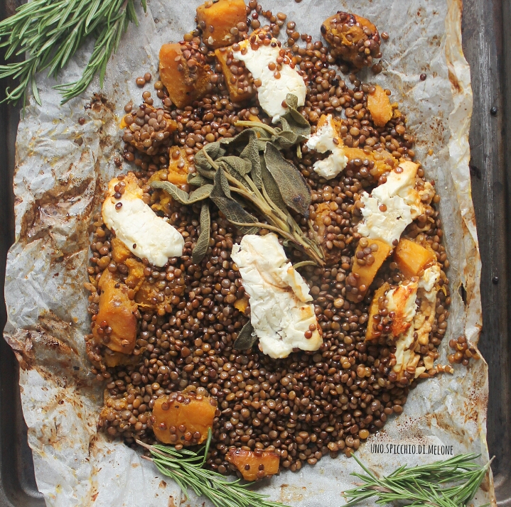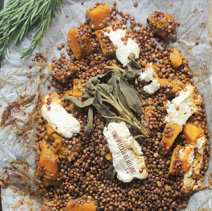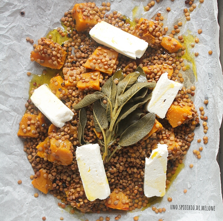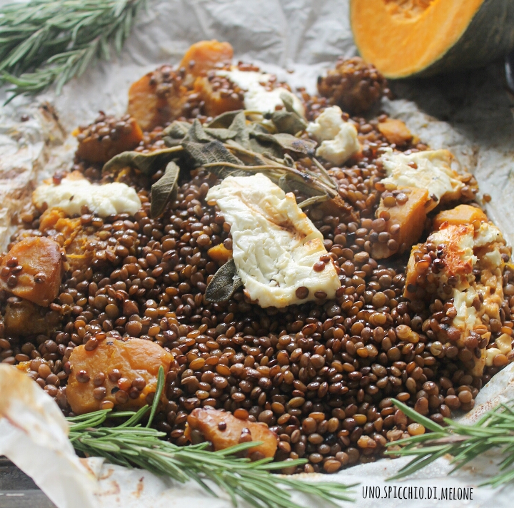 Le LENTICCHIE al CARTOCCIO con ZUCCA e FETA sono un ottimo contorno (o pasto) alternativo e salutare.