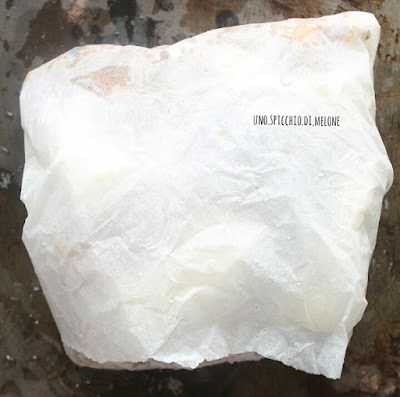 Nel cartoccio aggiungeteci anche la feta. Ora potete chiudere bene ed infornare per una mezz’oretta.