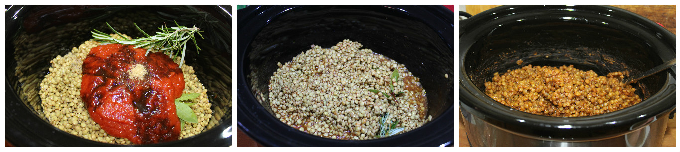 Una volta scolate per bene inseritele insieme a tutti gli altri ingredienti nella pentola slow cooker, mescolate accuratamente e cuocete per 4/5 ore a temperatura alta o finché non le lenticchie non raggiungeranno la consistenza desiderata.A me piacciono ben cotte e un pochino brodose quindi ho aggiunto un filo in più d’acqua.