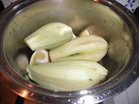 Pelate le melanzane, tagliatele in quarti, fatele cuocere a vapore con mezzo limone. Quando saranno morbide fatele scolare bene fin quando avranno perso tutta l’acqua.