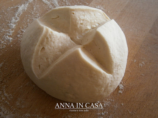 Formare un panetto, fare un taglio a croce e mettere a lievitare fino al raddoppio, in un contenitore di vetro (possibilmente grande almeno tre volte il volume dell’impasto) e coprire con pellicola trasparente bucherellata.