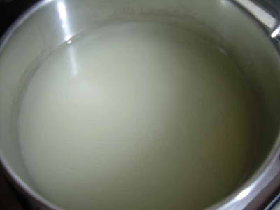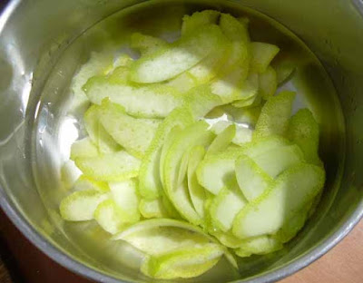 preparare lo sciroppo di acqua e zucchero, portando ad ebollizione l’acqua fino a quando lo zucchero non si è completamente sciolto, quindi lasciare raffreddare.