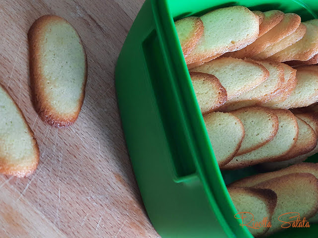 I biscotti dovranno essere ben distanziati in quanto le lingue di gatto in cottura si abbassano e si allargano notevolmente.