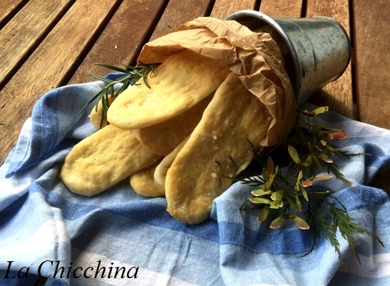 Le lingue di suocera si possono aromatizzare in molti modi. A me piacciono così: spolverate con sale grosso e aghi di rosmarino… Una croccante bontà!