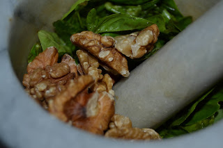 Questo caldo autunnale ha allungato la vita del mio basilico nell’orto: l’ho utilizzato insieme alle noci per creare questo pesto rustico, pestato al mortaio, profumato con l’aglio e insaporito con un buon parmigiano.
