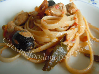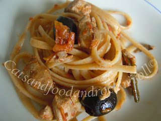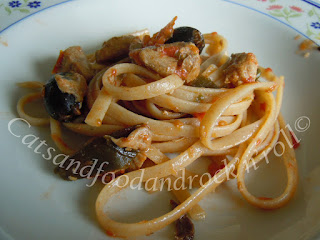 Io l’avevo detto, anzi, l’avevo scritto, qui, che di sicuro avrei trovato altri modi in cui impiegare l’alga kombu. Per esempio, in un mediterraneissimo sugo di tonno alletterato fresco con olive e capperi e origano.