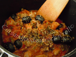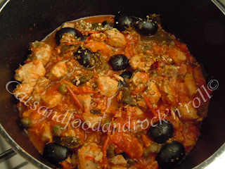 Portare la salsa a bollore e aggiungere olive e capperi, e infine salare.