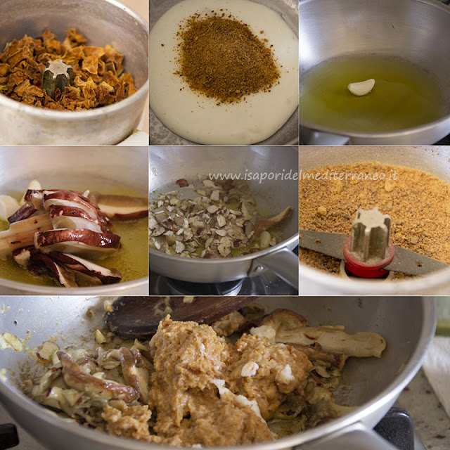 Pulite i funghi porcini, eliminando la parte terrosa del gambo e strofinandoli delicatamente con un panno, quindi tagliateli a fette. In una padella scaldate l’olio extra vergine di oliva e uno spicchio d’aglio schiacciato; appena inizia a soffriggere unite i funghi porcini e fate insaporire per 5-6 minuti a fuoco lento coprendo con un coperchio. Trascorso il tempo aggiungete le nocciole sminuzzate, lasciate tostare per circa un minuto, salate e pepate e aggiungere la besciamella alla zucca.