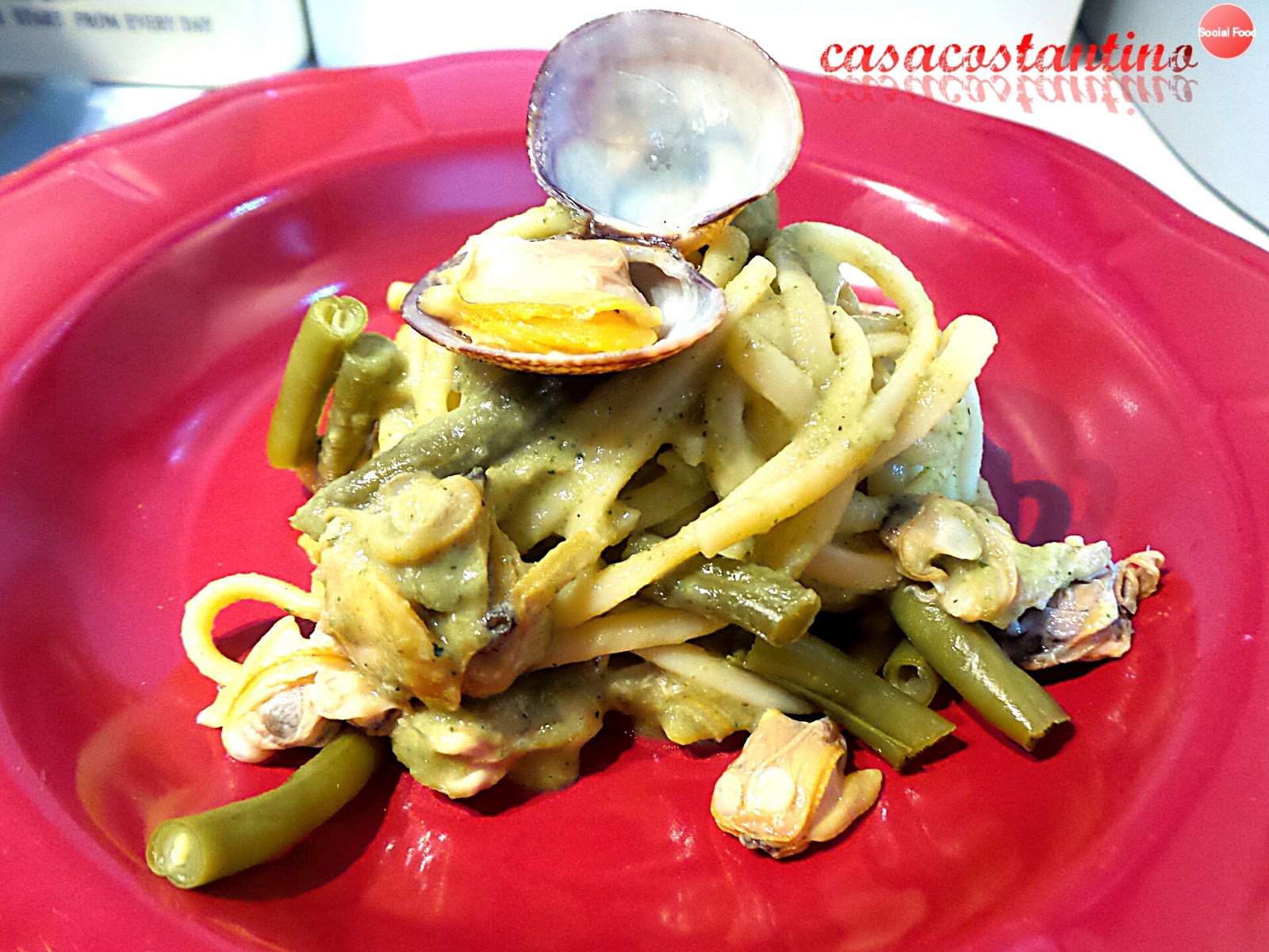 Un esperimento che mi sono concesso, è stato quello di sconvolgere la tradizionalissima pasta con le vongole unendo, a questo straconosciuto piatto, un pesto di fagiolini unitamente a dei tocchetti degli stessi. Sicuramente, chi ama questo primo, storcerà il naso ma mi sento di rassicurarlo visto che, non c’è miglior risultato di un esperimento fatto in presenza di ospiti che non si sono certo lamentati anzi, a vedere i loro piatti, devo dire che hanno sicuramente gradito la cosa…non esiste miglior conferma, ve l’assicuro quindi perché non provate anche voi? Ecco cosa serve per preparare questa portata: