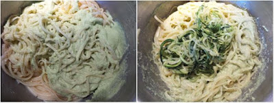 Scoliamo la pasta al dente quindi aggiungiamo il pesto di avocado e le zucchine avendo cura di tenerne un po’ da parte per la decorazione finale. Mantechiamo e prepariamoci per servire.
