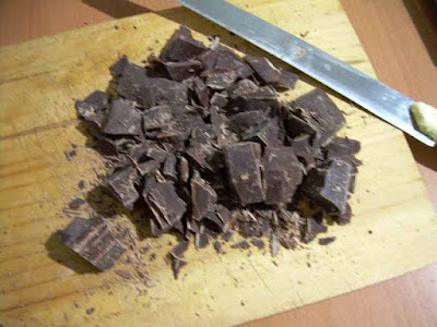 Spezzettare grossolanamente il cioccolato fondente,