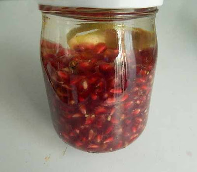 semplice da preparare richiede solo un pò di pazienza per sgranare i chicchi del melograno uno ad uno stando attenti a non prelevare la pellicina bianca che è amara e pazienza ad attendere almeno un mese prima di servirlo.