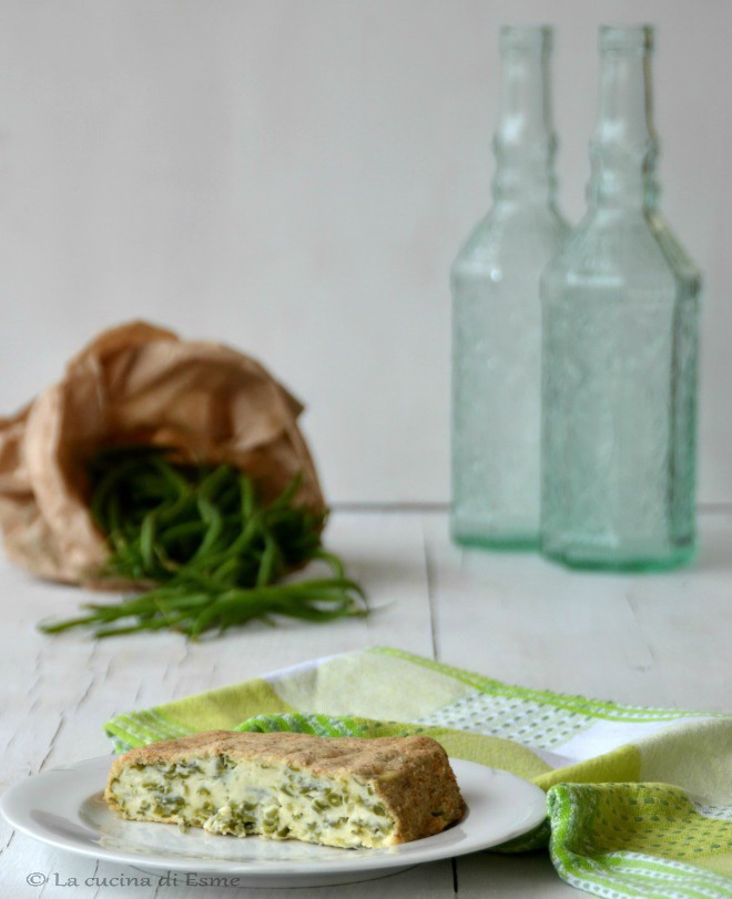 Per prima cosa iniziate preparando la besciamella, il procedimento lo potete trovare qui e profumatela con una grattugiata di noce moscata. Una volta pronta lasciatela raffreddare. Nel frattempo pulite e lessate i fagiolini in acqua bollente salata per 10 minuti cica. Scolateli al dente e lasciateli intiepidire. Dividete gli albumi dai tuorli, e aggiungete questi ultimi alla besciamella, uno alla volta, aggiungendo il tuorlo successivo solo quando il precedente sarà ben assorbito. Poi unite i fagiolini, tagliati grossolanamente (ogni fagiolino in tre parti) la fontina grattugiata e gli albumi, montati a neve ben soda. Imburrate una teglia e spolverizzate con il pane grattato. Versate il composto preparato, livellatelo e spolveratelo con altro pangrattato. Infornate a 200°C per 40 minuti circa. Lasciate intiepidire prima di servire. E’ ottimo anche freddo.