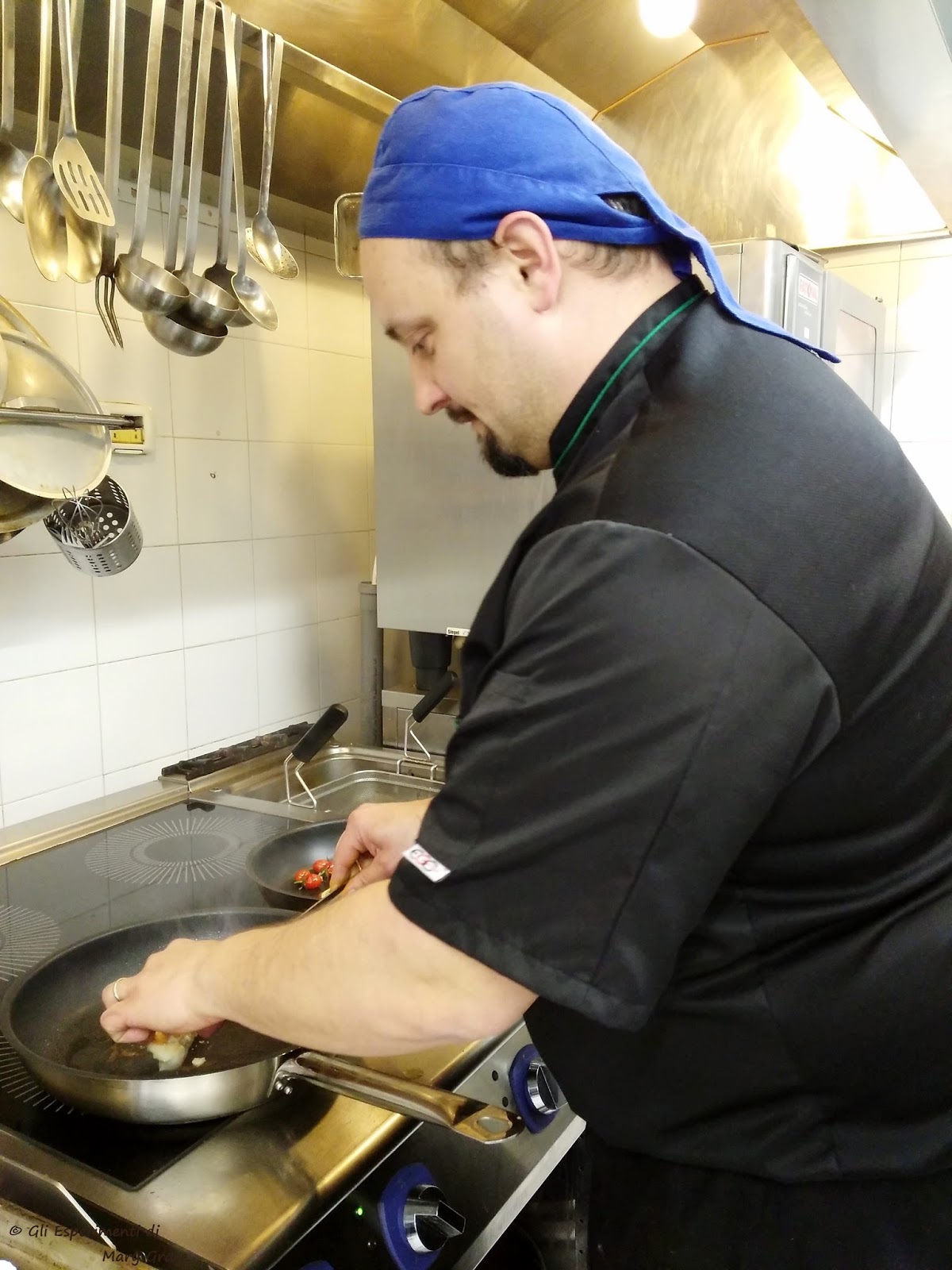 Ed ecco che Romeo, professionale ed attento, mi serve il profumatissimo trancio di Rana Pescatrice delle cui prime fasi di preparazione sono stata testimone.