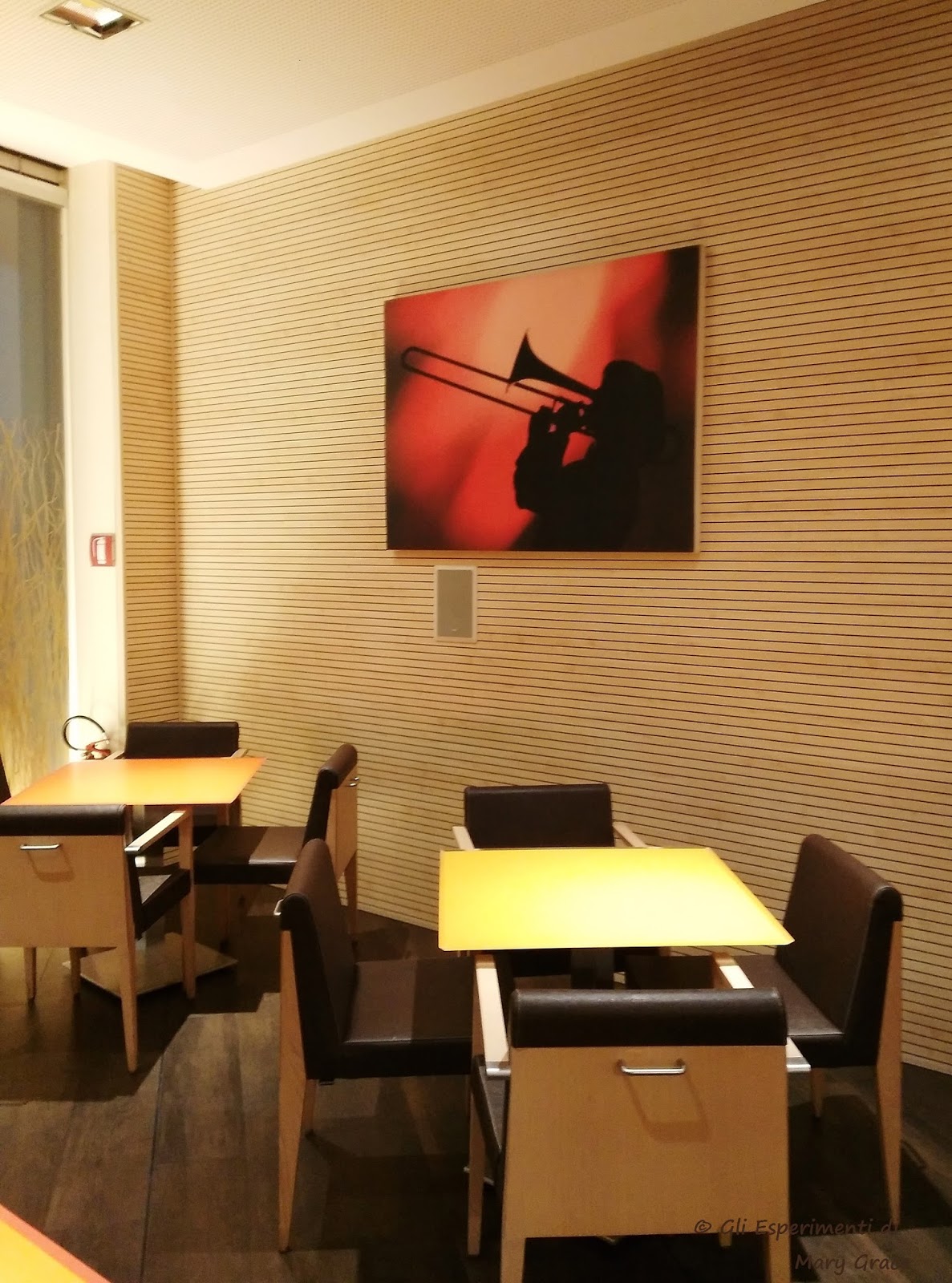 Saliamo ancora qualche scalino e siamo nella Sala Convivio, ambiente dall’atmosfera intima ed al contempo vivace.