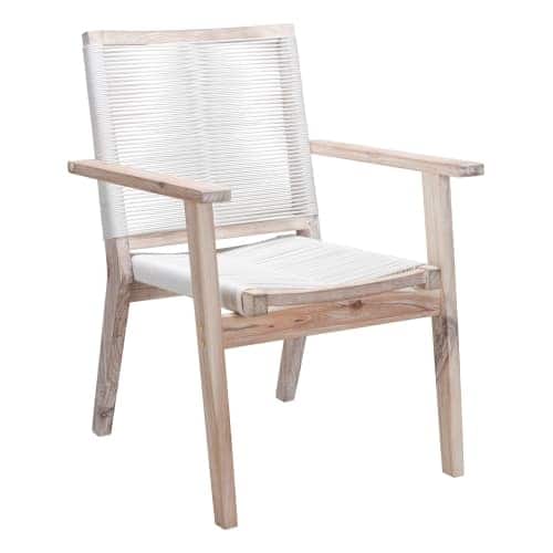 Set Of 2 Wicker Loom Outdoor Dining Arm Chair Made With Solid Teak Aluminum Rope 100 Olefin In Stone Wash And Smoke Gray Finish By Orient