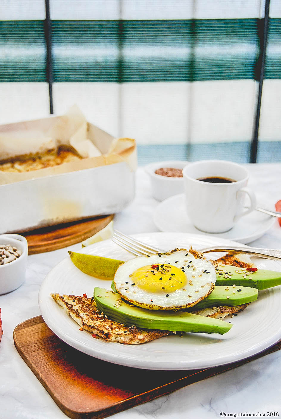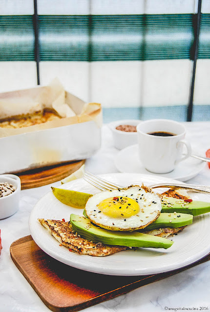 Prepare the toast with the cauliflower base, avocado slices and finally the egg.