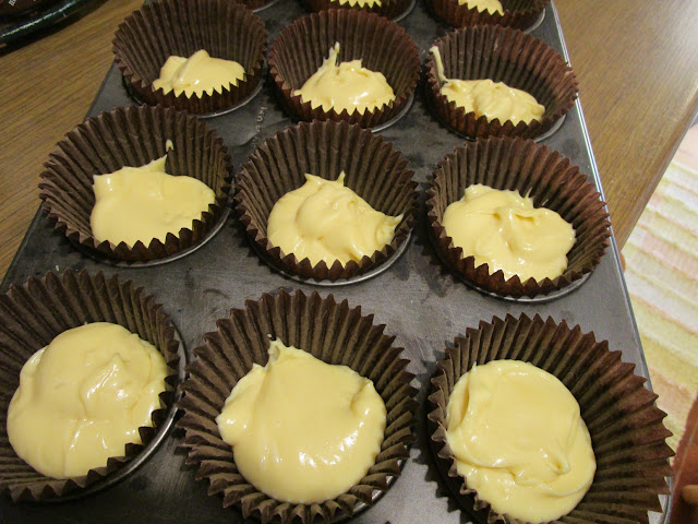 Con un cucchiaio riempire a metà i pirottini di carta precedentemente messi in uno stampo per muffins.