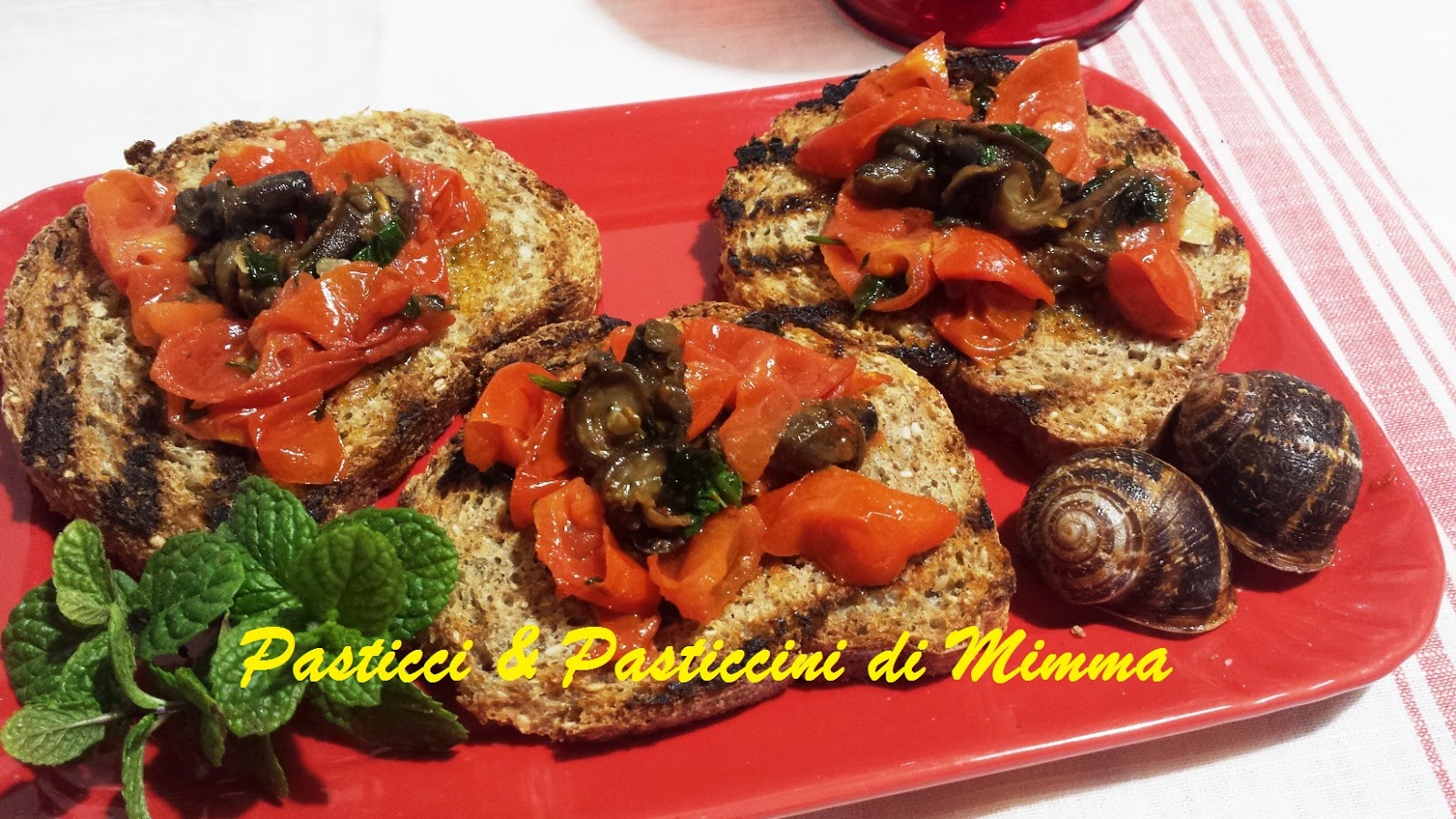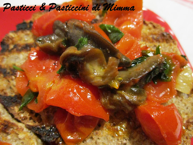 a questo punto mi sono dedicata alla preparazione dell’intingolo nel quale insaporirle e realizzare queste raffinatissime e gustose bruschette con pane nero ai semi , e la ricetta del pane la trovate quì.