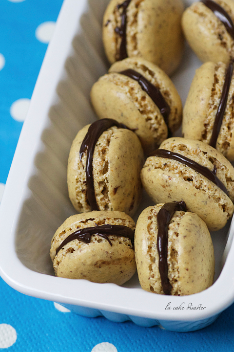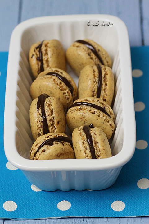Ad un macaron non riesco mai a dire di NO!!! Questa volta ho voluto preparare questi fantastici dolcetti francesi sostituendo la classica farina di mandorle con quella di nocciole…e sinceramente a me piacciono di più in questa versione. Il procedimento è lo stesso, sono stata fortunata che ho trovato la farina di nocciole già pronta (anche se per farla più fine ho usato un mixer) altrimenti se non la trovate, basta comprare le nocciole e prepararla da sé. In un mixer mettere 2 cucchiai di zucchero semolato ogni 100 gr di nocciole spellate se si vuole preparare un dolce, oppure 2 cucchiai di pan grattato per una preparazione salata, azionare il mixer ed interrompere varie volte per non surriscaldare le nocciole e controllare il grado di finezza della farina (questo procedimento va bene anche per le mandorle).