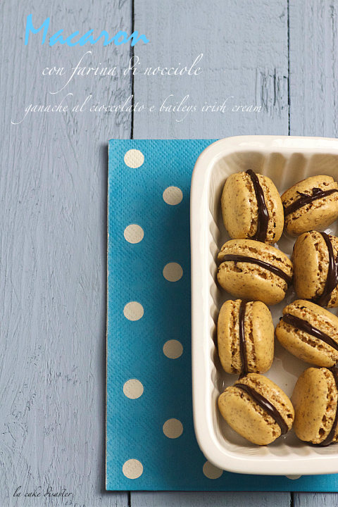 MACARON CON FARINA DI NOCCIOLE E GANACHE AL CIOCCOLATO FONDENTE E BAILEYS IRISH CREAM