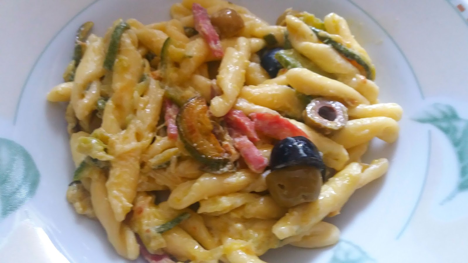 a meta’ cottura unite la cipolla,il salame,le olive ed il pepe,allungate con vino ed acqua