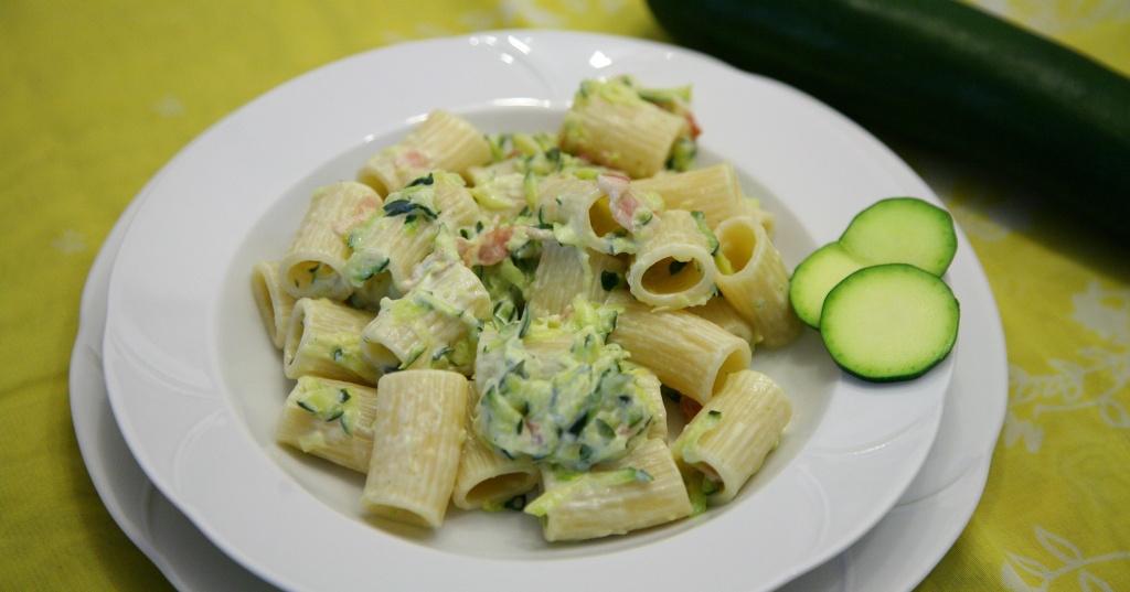Una volta cotta far saltare la pasta nella padella con le zucchine, aggiungere il cream cheese e un mestolo di acqua di cottura.