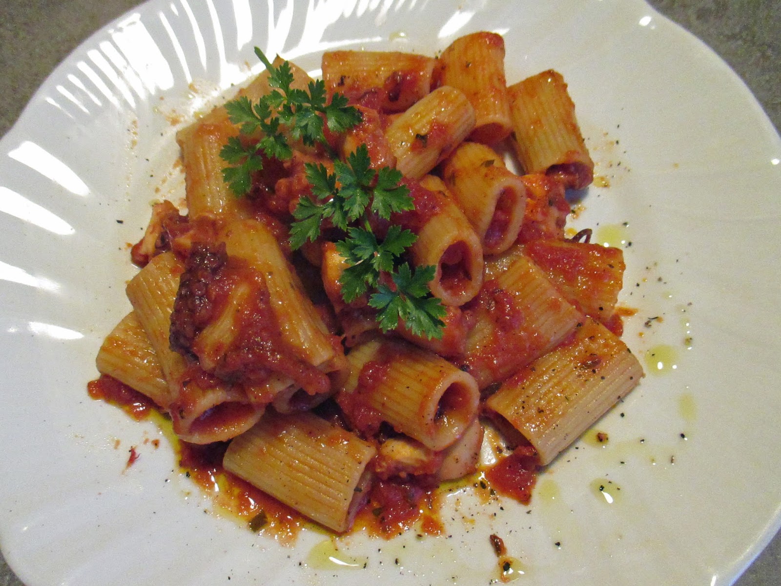 Questo primo piatto di pesce è davvero speciale. La consistenza del polpo, con il sapore leggermente acidulo del sugo di pomodoro e il profumo del Marsala.