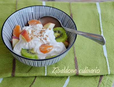 Preparare la crema montando con il frullatore elettrico la ricotta con lo yogurt, dolcificare con miele e aromatizzare con succo di limone e cannella.