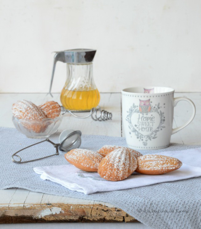 Fate fondere il burro e mettetelo a raffreddare. Nel frattempo, in una ciotola, unite le uova con lo zucchero, aggiungete 2 cucchiai abbondanti di miele ed iniziate a lavorate gli ingredienti con una frusta a mano, fino ad ottenere una crema soffice e spumosa. Setacciate le farine con il lievito, un pizzico di sale e aggiungete poco alla volta al composto montato, facendo cadere a pioggia da un setaccio, seguitando sempre a lavorare il composto con la frusta. Amalgamate infine il burro, unendolo poco alla volta e 2 cucchiaini di estratto di vaniglia. Una volta che il composto sarà ben amalgamato, sigillate la ciotola con della pellicola trasparente e mettete in frigo per un minimo di sei ore ed un massimo di 12 ore. Io normalmente impasto la sera e faccio passare la notte in frigo la mattina inforno e sono pronte per colazione. Ricordate che è lo shock termico che fa venire la famosa gobba alle madeleine. Una volta tolta la ciotola dal frigo, ungete di burro lo stampo da madeleine e infarinatelo, scrollando l’eccesso, riempite con l’impasto ogni cavità fino a 2/3 di altezza. Infornate in modalità statico a 200° per 10 minuti o in modalità areato a 180° per 13 minuti. Il giorno dopo sono ancora ottime … oltre non saprei dirvi, da me spariscono!