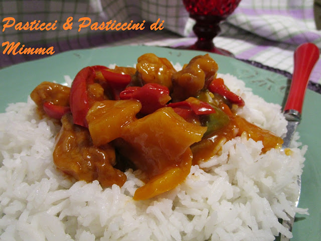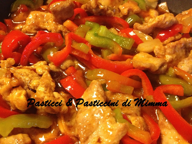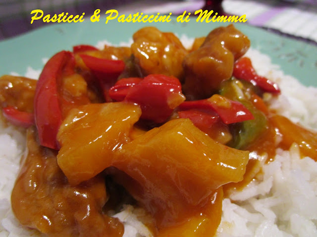 - aggiungere la carne fritta e la salsa agrodolce e cuocere, a fuoco bassissimo e con il coperchio, per 10 minuti, mescolando