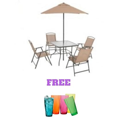Mainstay Albany Lane Folding Dining Set Includes Dining Table Folding Chairs And Umbrella 6 Piece Tan