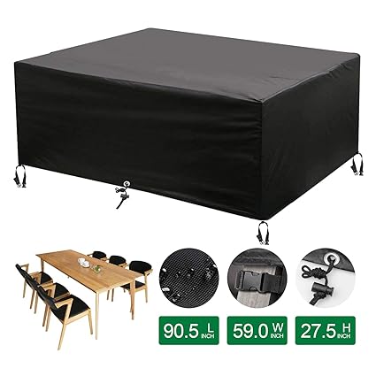 Hiraliy 90 Inch Outdoor Patio Furniture Covers Rectangular Waterproof 420d Heavy Duty Oxford Cloth Dining Table Chair Set Cover 90 L X 59 W X 27 5