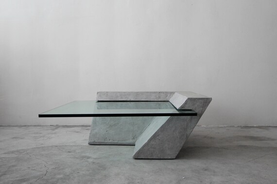 Cantilevered Faux Concrete Plaster And Glass Coffee Table