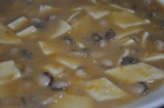 Questi fagioli non hanno bisogno di essere tenuti molto in ammollo e la loro cottura è molto rapida. Li faccio bollire prima con acqua e una foglia d’alloro. Poi li scolo e proseguo la cottura con un soffritto di cipolla, sedano e carota.