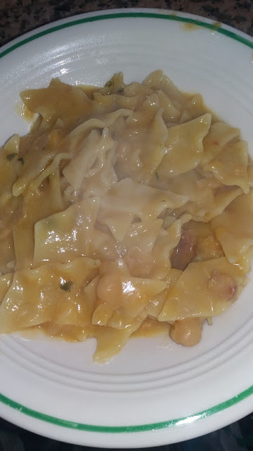 sale e lasciare appassire,aggiungere acqua a coprire ed una parte di ceci frullata ed un altra interi,