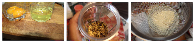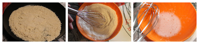 Procedete quindi ad amalgamare meringa e composto di mandorle, mescolando dal basso verso l’alto, fin quando alzando la spatola si formerà come un nastro di meringa.
