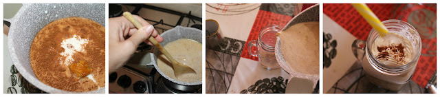 spezie e lo zucchero; portate il tutto a bollore mescolando piano piano. Versate subito in un grande bicchiere di vetro o in tazza, completate con panna montata e una spolverata di