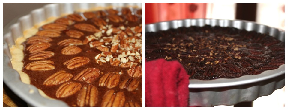 Ricoprite la superficie con il restante noci pecan, io ho creato due cerchi e poi quelle avanzate un po’ rotte e un po’ brutte le ho tritate a coltello e ho riempito il centro.