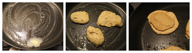 Scaldate una padella antiaderente con un ciuffetto di burro e fate cadere la pastella a cucchiaiate all’interno. Cuocete un paio di minuti per lato.