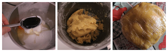 Lavorate tutti gli ingredienti con un robot da cucina fino ad ottenere un composto uniforme ben amalgamato. Raccogliete la pasta e lavoratela ancora con le mani, formate un panetto, avvolgetelo con la pellicola da cucina e lasciatelo riposare in frigorifero per mezz’ora.