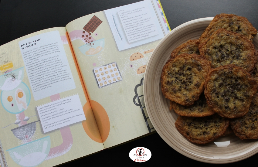 Unite le uova al composto di burro e zucchero ed infine gli ingredienti secchi, lavorate bene per amalgamare il tutto, otterrete un composto umido ma compatto. A questo punto aggiungete le gocce di cioccolato, mescolate l’impasto e raggruppatelo in un’unica palla che andrà fatta riposare 30 minuti in frigorifero avvolta da pellicola trasparente.